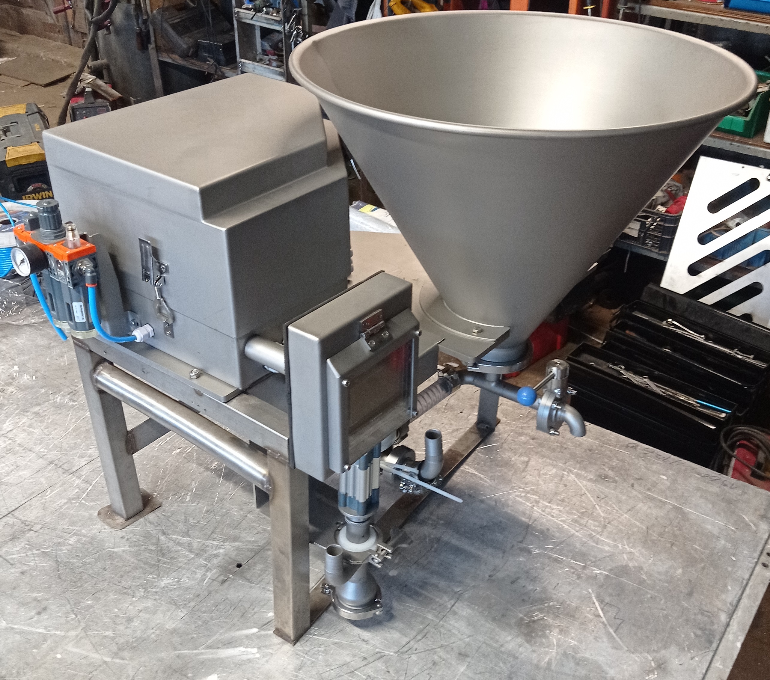 W trakcie wielu lat doświadczeń w zakresie dozowania sosów i kremów opracowaliśmy autorski proces dozowania. W odróżnieniu od np. dozownic tłokowych, gdzie przepływ sosu ma charakter cykliczny, w naszym rozwiązaniu nie ma wyodrębnionego cyklu ssania, a cały zaoszczędzony w ten sposób czas można przeznaczyć na zwiększenie wydajności lub redukcję prędkości napływu sosu do opakowania. Stosowane przez nas pompy dozujące pozwalają na dozowanie sosów i kremów o lepkości do 10 000 cP zawierających cząstki stałe o średnicach do 8mm.